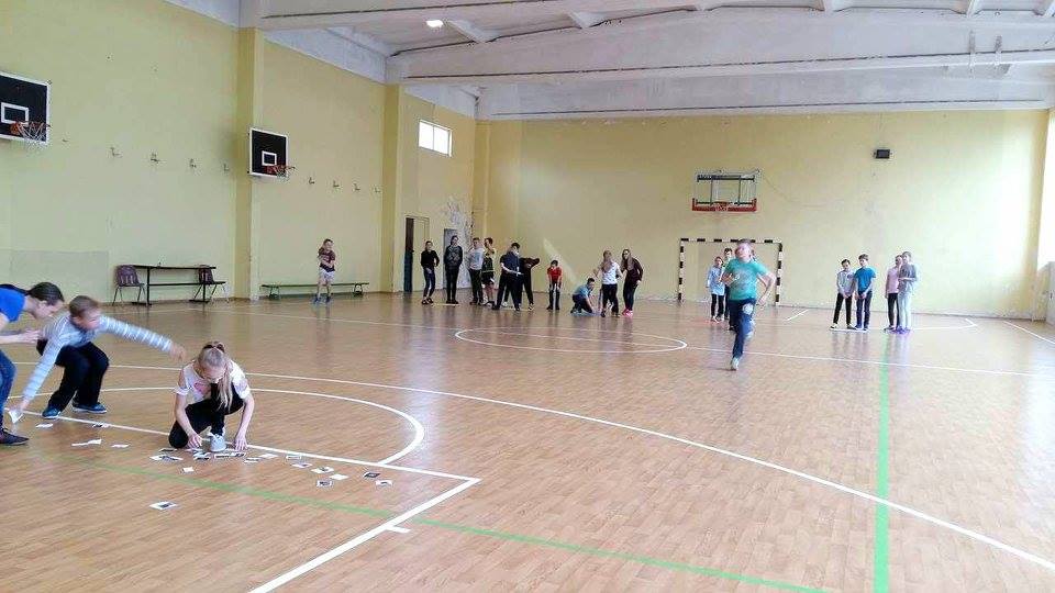 Per istorijos ir kūno kultūros pamoką, mokinių grupes mokytojai suskirstė į tam tikrus istorinius laikotarpius. Grupės turėjo bėgti iki kitos salės pusės ir atsinešti vieną kortelę, kuri tinka jų laikotarpiui. Surinkus 10 kortelių, kūrėme plakatą ir papasakojome apie tą laikotarpį, (pvz. Seniausi laikai, Viduramžiai, nauji laikai, naujausi laikai ir t.t.) Pabaigoje mokiniai draugiškai sužaidė kvadratą.
