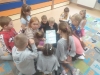 Vaikučiai aiškinosi nesuprantamus žodžius, spėliojo kas vyks toliau, atsakinėjo klausimus, reflektavo, spalvino triušiukus. Visiems labai patiko smagus pasakojimas.