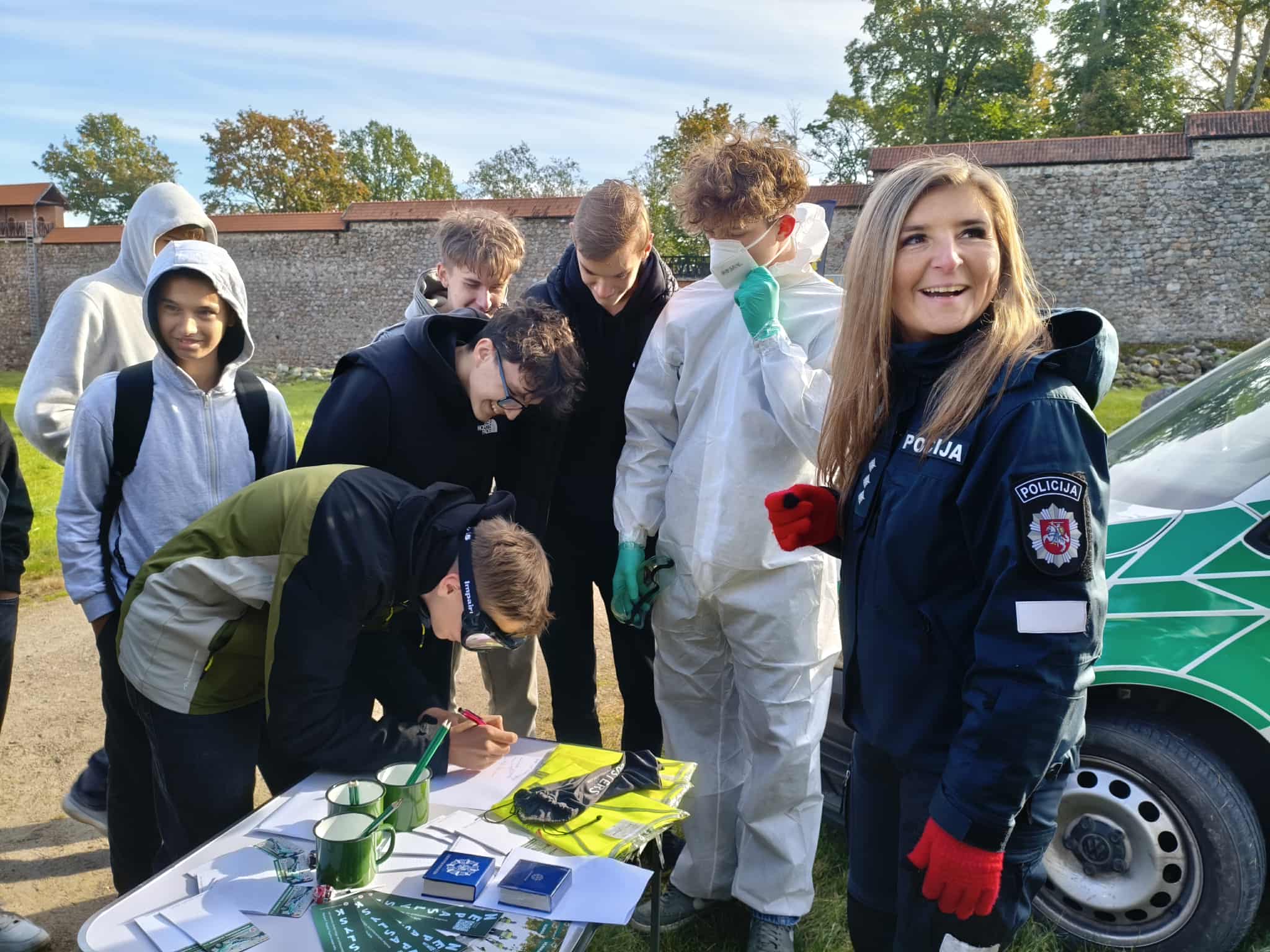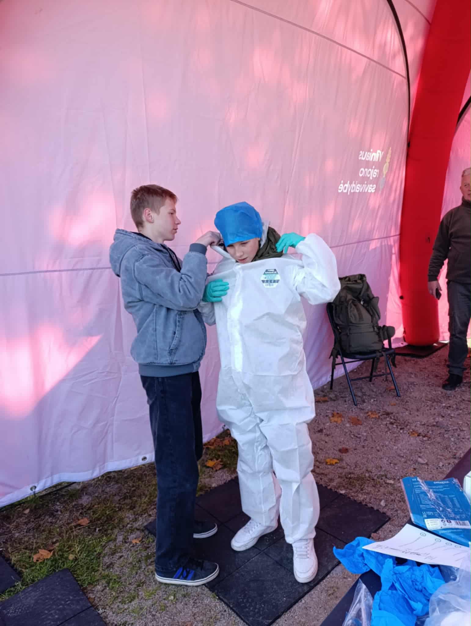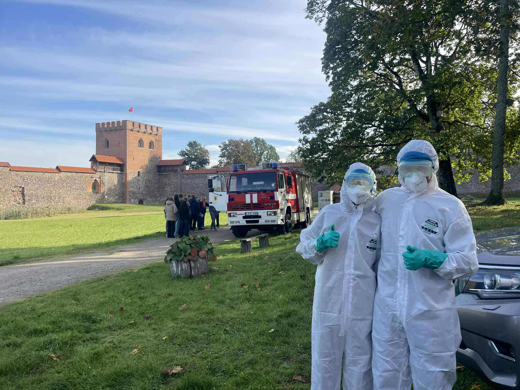 Spalio 1 d. mūsų gimnazijos 8 – IG kl. mokiniai dalyvavo renginyje „Jaunimo gebėjimų veikti ekstremalių situacijų metu ugdymas“, kuris vyko Medininkų pilies kiemelyje. Mokiniai turėjo galimybę susipažinti su įvairių įstaigų veikla, išbandyti savo gebėjimus atpažinti pavojingas situacijas ir įgyti žinių, kurias galima pritaikyti tiek kasdienėje veikloje, tiek ekstremaliose situacijose. Savo veiklą pristatė Vilniaus rajono policijos komisariato, Vilniaus rajono savivaldybės visuomenės sveikatos biuro, Vilniaus rajono priešgaisrinės tarnybos atstovai, taip pat VSAT prie Lietuvos Respublikos vidaus reikalų ministerijos Pasieniečių mokyklos, Priešgaisrinės apsaugos ir gelbėjimo departamento bei Vilniaus rajono savivaldybės administracijos Civilinės saugos skyriaus specialistai. Praktinių užsiėmimų metu mokiniai įgijo konkrečių įgūdžių: mokėsi teikti pirmąją pagalbą ir rišti žaizdas, gesinti ugnį, atpažinti sirenų signalus, taikyti evakuacijos principus bei komplektuoti išvykimo krepšį su būtiniausiais daiktais.