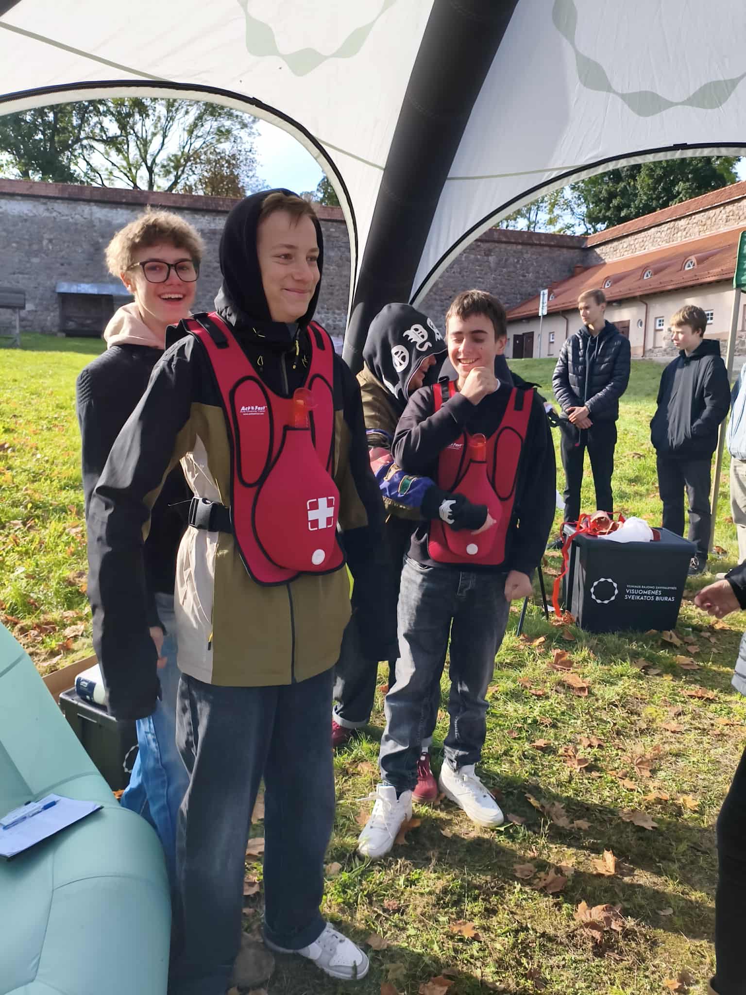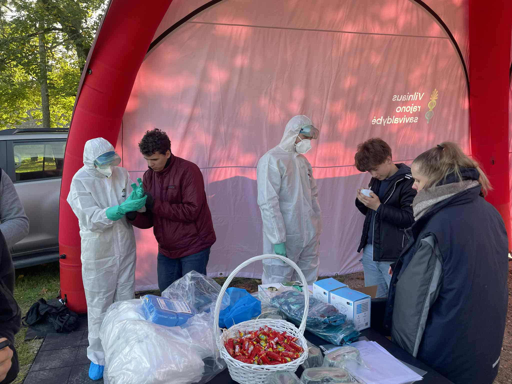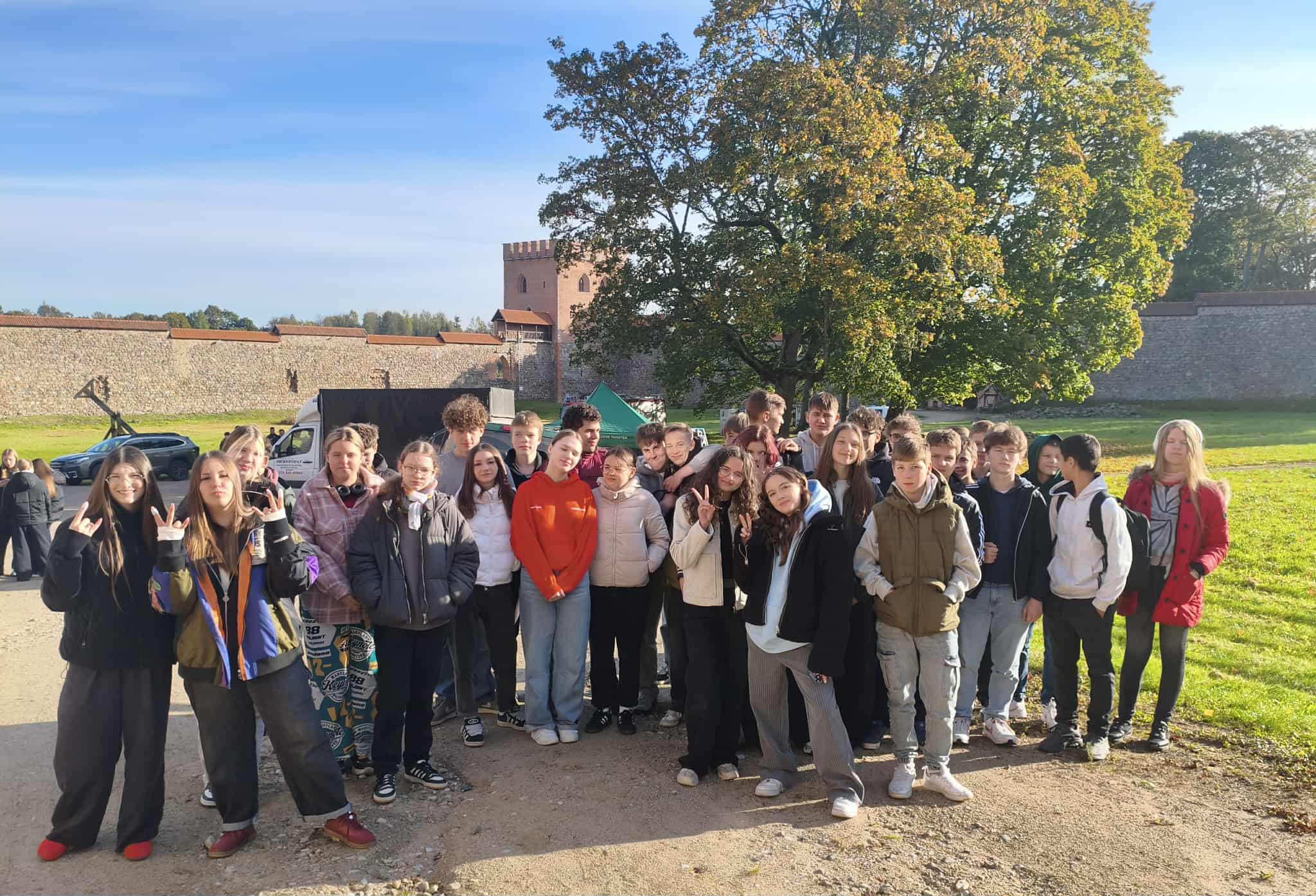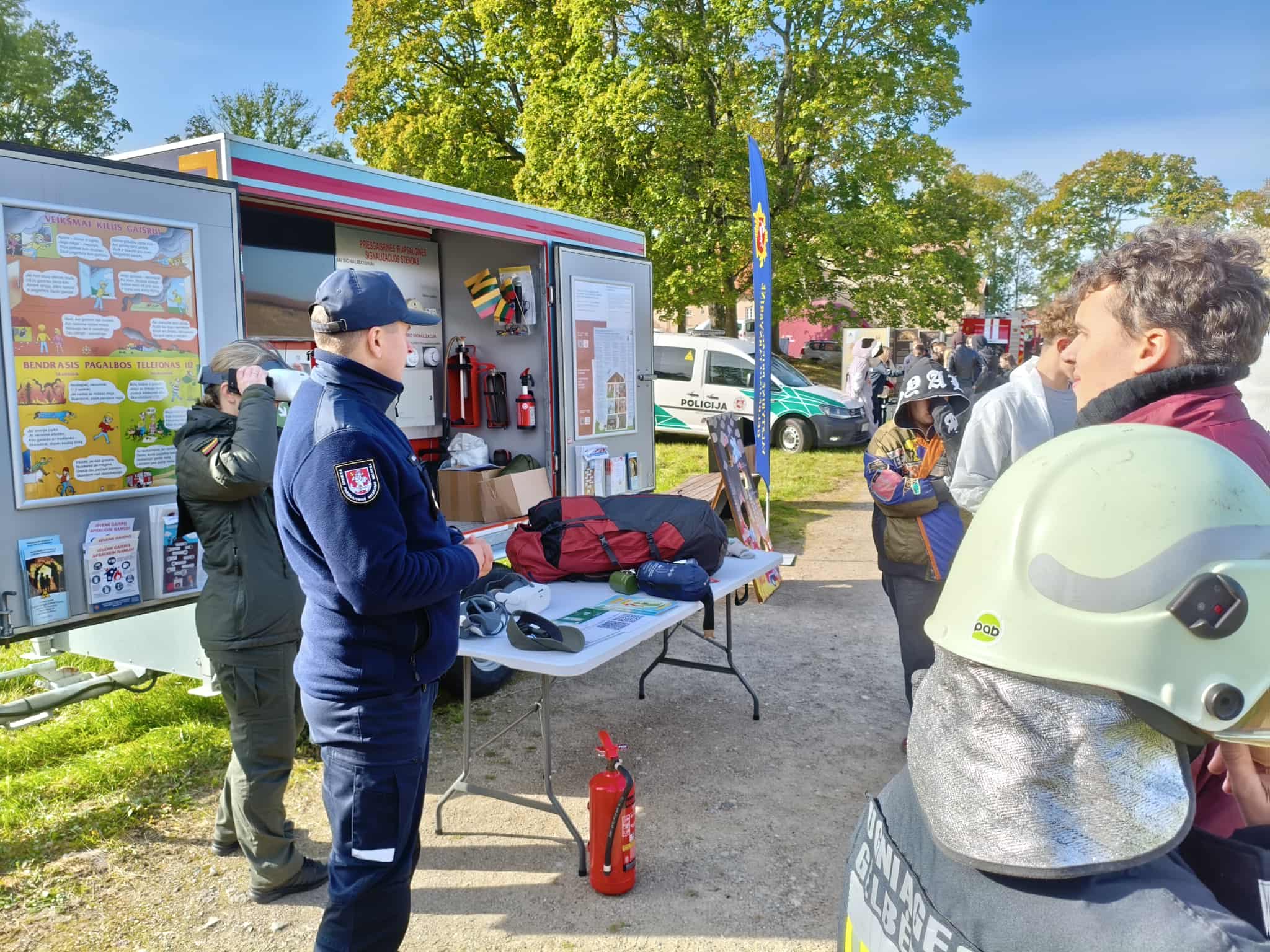 Spalio 1 d. mūsų gimnazijos 8 – IG kl. mokiniai dalyvavo renginyje „Jaunimo gebėjimų veikti ekstremalių situacijų metu ugdymas“, kuris vyko Medininkų pilies kiemelyje. Mokiniai turėjo galimybę susipažinti su įvairių įstaigų veikla, išbandyti savo gebėjimus atpažinti pavojingas situacijas ir įgyti žinių, kurias galima pritaikyti tiek kasdienėje veikloje, tiek ekstremaliose situacijose. Savo veiklą pristatė Vilniaus rajono policijos komisariato, Vilniaus rajono savivaldybės visuomenės sveikatos biuro, Vilniaus rajono priešgaisrinės tarnybos atstovai, taip pat VSAT prie Lietuvos Respublikos vidaus reikalų ministerijos Pasieniečių mokyklos, Priešgaisrinės apsaugos ir gelbėjimo departamento bei Vilniaus rajono savivaldybės administracijos Civilinės saugos skyriaus specialistai. Praktinių užsiėmimų metu mokiniai įgijo konkrečių įgūdžių: mokėsi teikti pirmąją pagalbą ir rišti žaizdas, gesinti ugnį, atpažinti sirenų signalus, taikyti evakuacijos principus bei komplektuoti išvykimo krepšį su būtiniausiais daiktais.