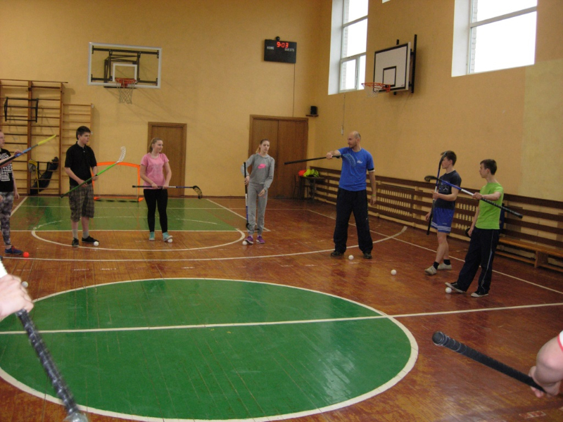 2014 metų balandžio mėnesio 8 dieną mūsų mokykloje viešėjo Lietuvos grindų riedulio federacijos valdybos narys Andrius Jelaga. Svečias papasakojo mokiniams apie grindų riedulio atsiradimą, žaidimo subtilybes bei vis didėjantį šios sporto šakos populiarumą. Mokiniai patys išbandė kamuoliuko varymo, smūgiavimo elementus, dalyvavo tarpusavio varžybose. Šiai sporto šakai nereikia didelių resursų, o visapusiška nauda mokiniams akivaizdi.